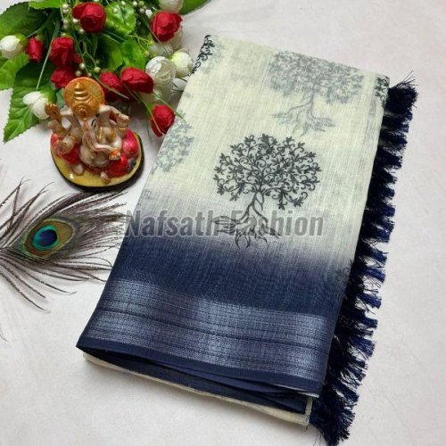 Ladies Linen Cotton Printed Saree